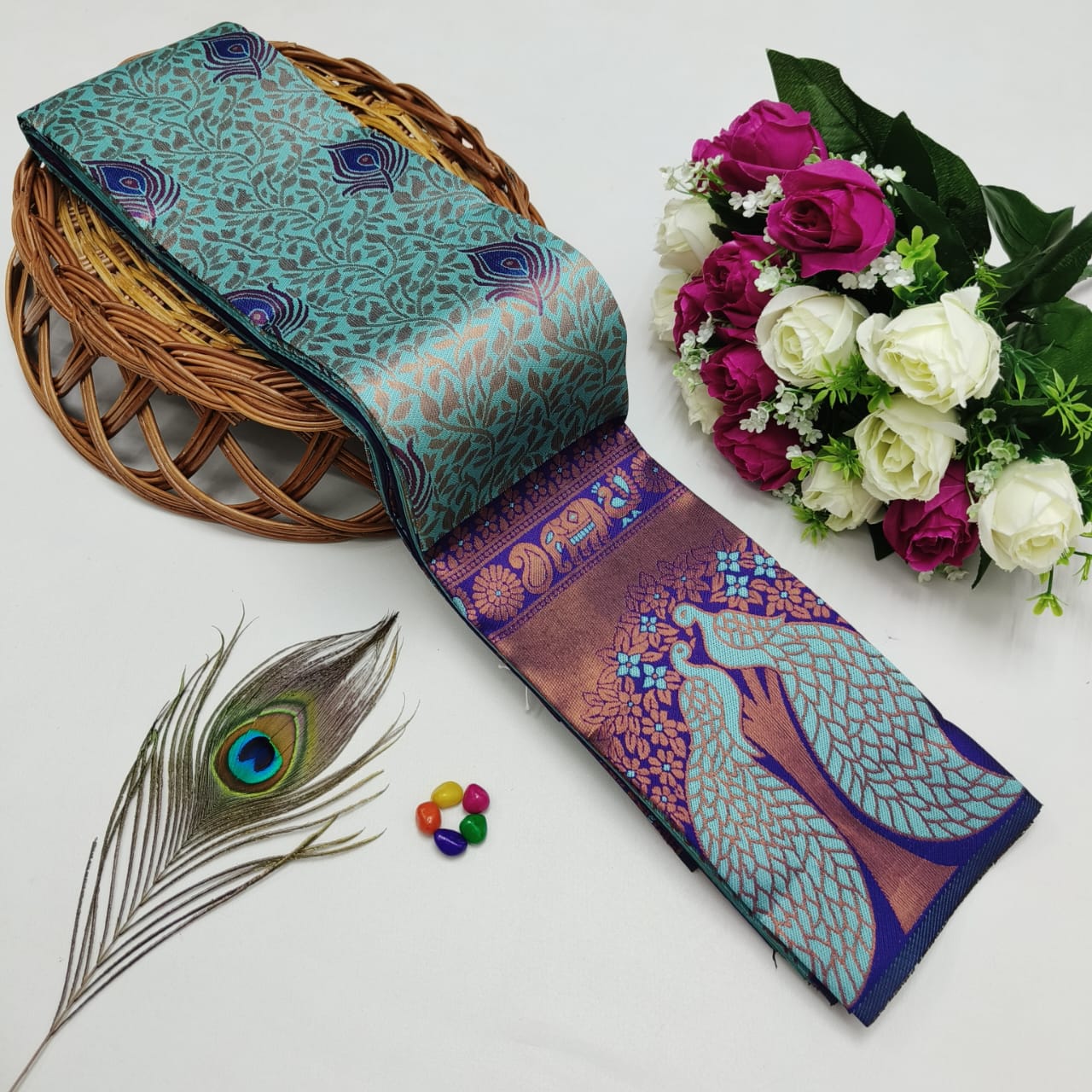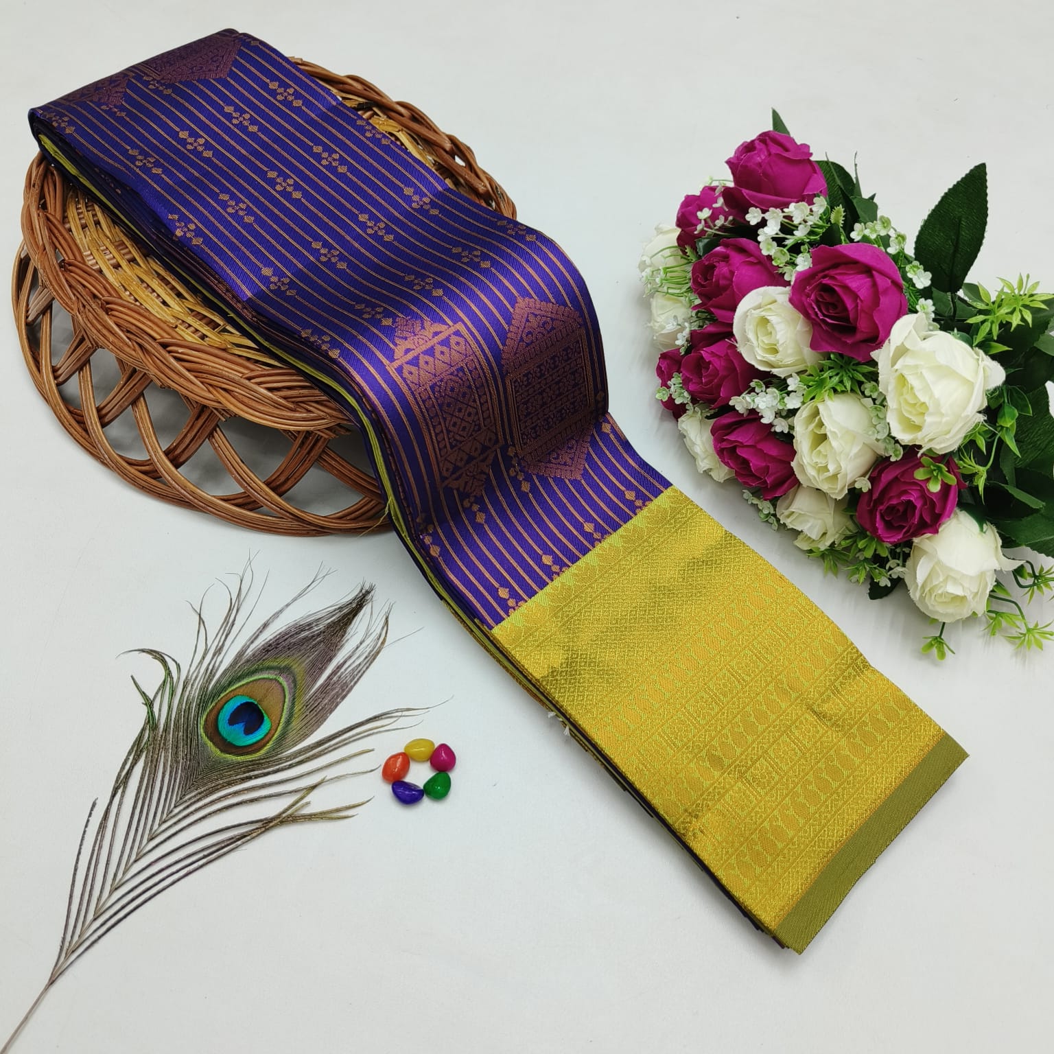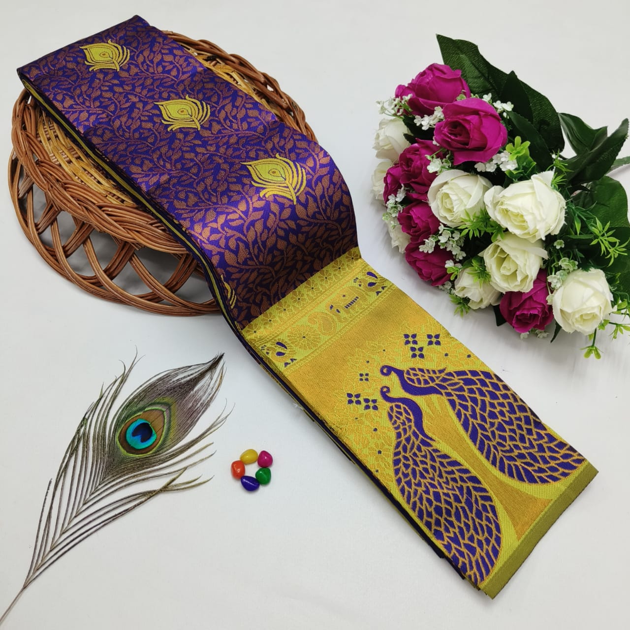 Pallu & Blouse: Rich contrast pallu paired with a matching contrast blouse piece.