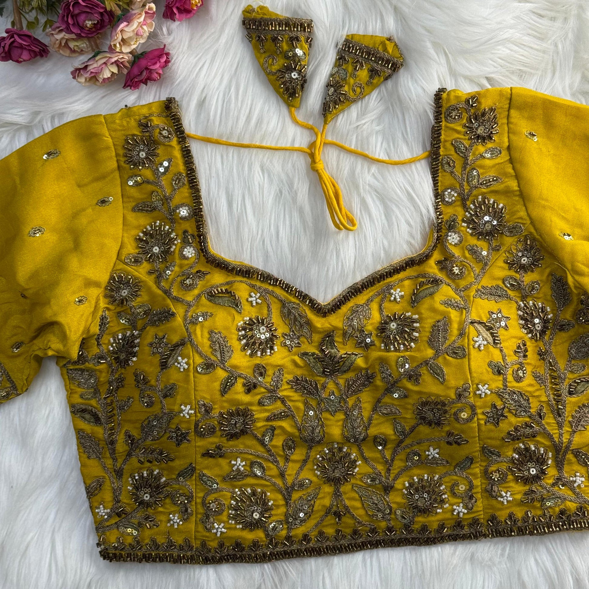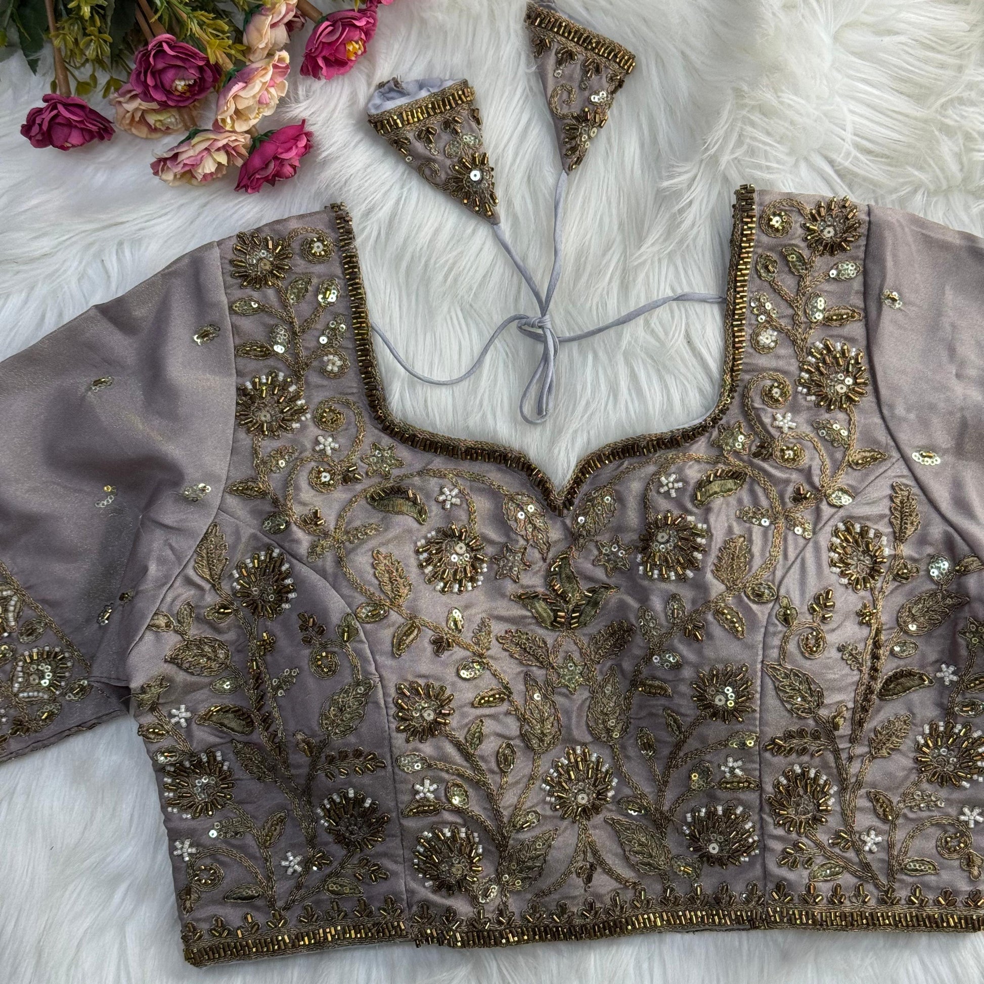 Heavy Embroidered Bridal Blouse with Star and Bead Copper Work