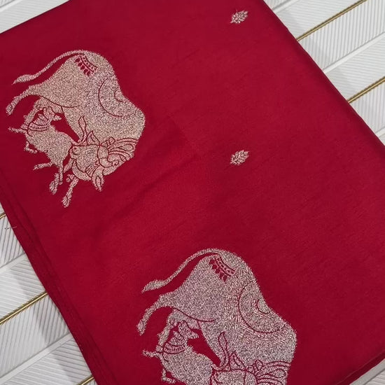 🪡 Design: Features an exclusive satin-effect border with zari butta weaving on both sides and full-saree zari work.