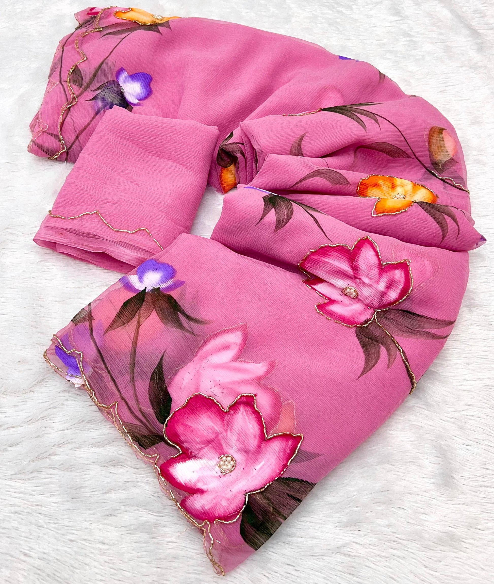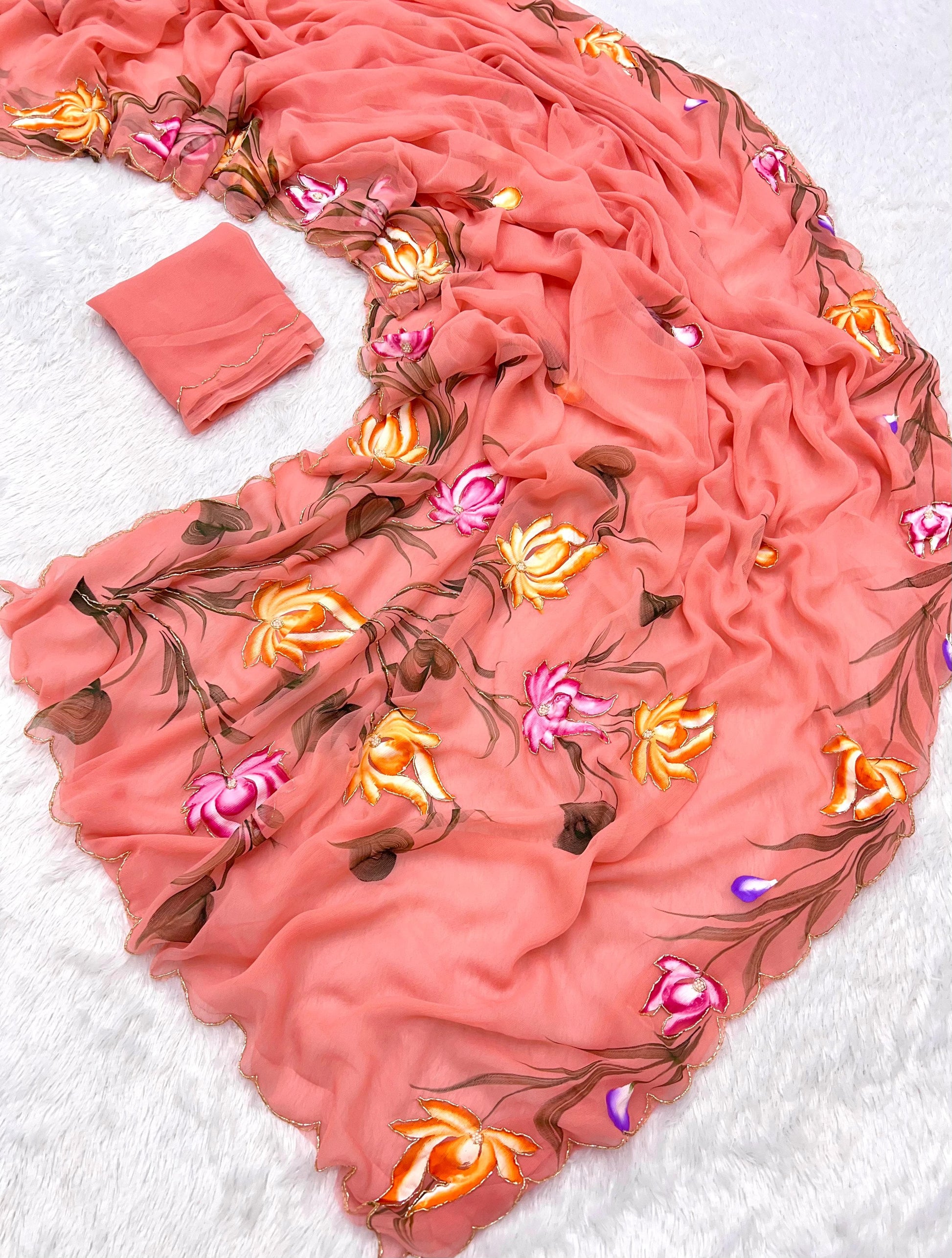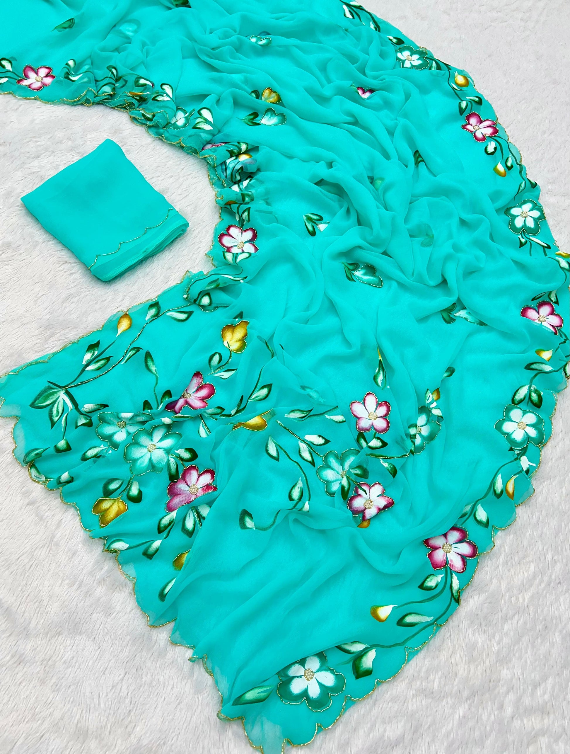 Pure Handwork Chiffon Saree – Elegant Lightweight Designer Collection