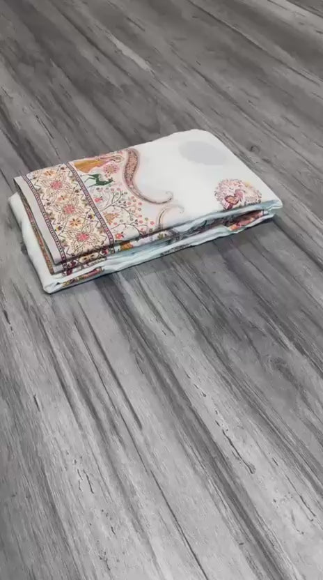 Pure Rajwadi Pashmina Silk Weaving Saree with Kashmiri Thread Work