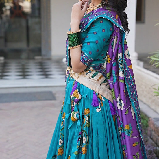 Tussar Silk Kalamkari Print Lehenga Choli with Dupatta – Elegant Designer